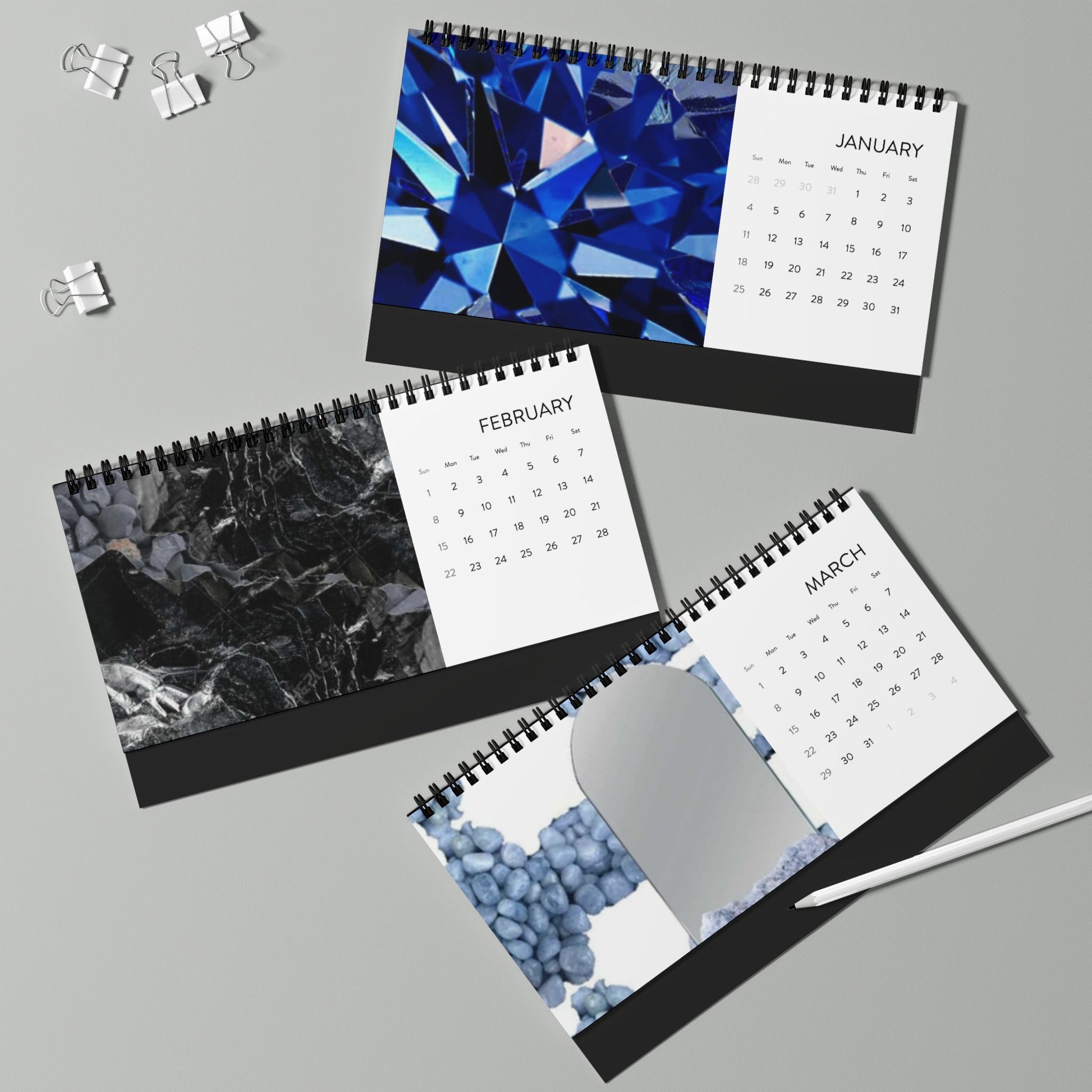 Stylish 2026 Desktop Calendar with Elegant Blue and Stone Designs